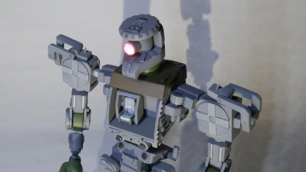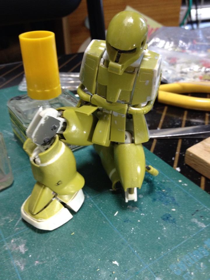 あっ!まだ内部フレームだけだった。これから外装の塗装とデカール貼りです。この状態だと、キットのパーツはよだれかけのアールの部分、首、裏拳から親指付け根、ヒザの〇の上半分です。他はプラ材などからの自作です。