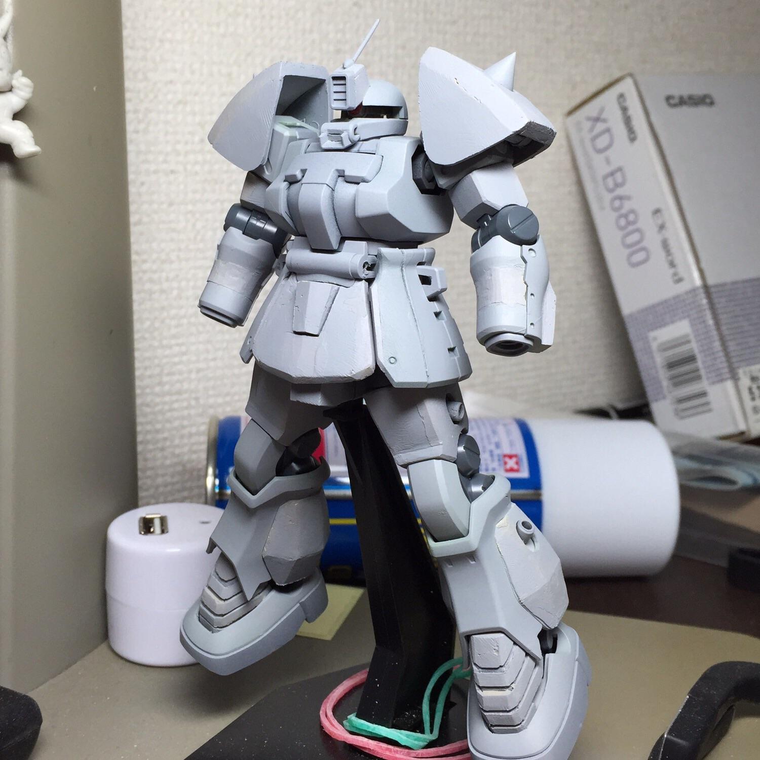 進捗報告! 全身の工作が終了したので、、 サフりました 関節は後ほどガンメタ吹いちゃうのでサフはスルー 改造部分の荒さが目立ちますね〜 まあその為...