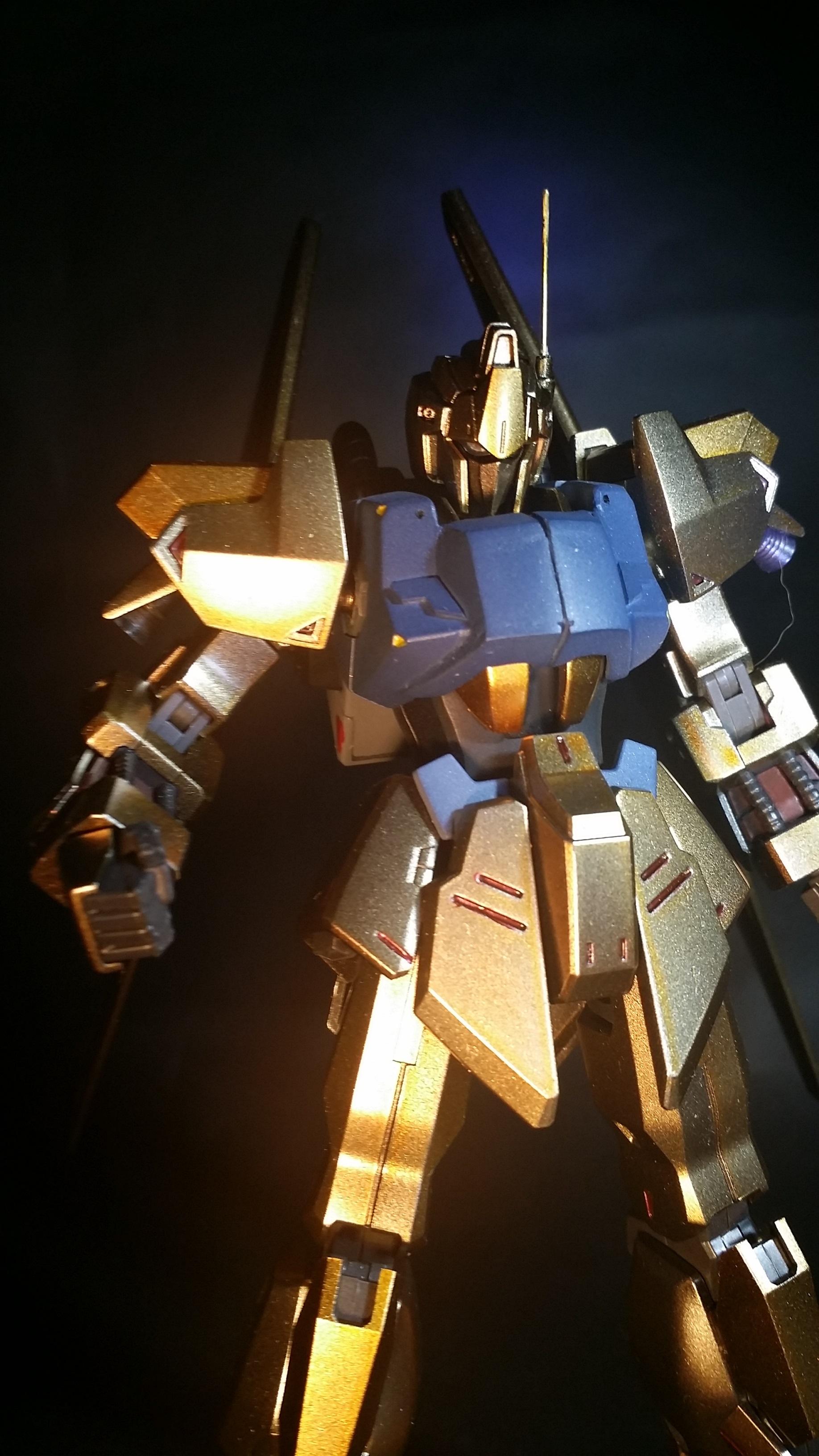アップし忘れていました。百式をシンプルにメタリック塗装で仕上げました。若干ディティールアップをしています。ゴールドは2色分けていますが、角度によって色味が似たり異なったり。もう少し色の差が出たらよかったかもしれません。塗装自体は結構満足いく仕上がりになりました。