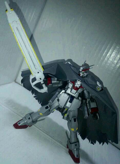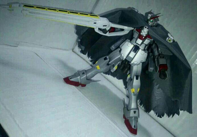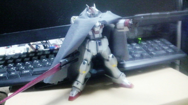 ダクト、バタフライバスター、クジャクをプラ材、真鍮パイプ、パテで追加しました。バタフライバスターおよびクジャクは差し替えなしで変形します。原作5巻を見て作製しました。スケールはザンバスターとムラマサブラスターを参考にしました。変形基部は3mmプラ棒と1mm真鍮パイプ、先端のビーム放出部はHGスケールのビームライフル、側面はコトブキヤの角バーニアを使っています。クロスボーンがすきです!そのうちファントムにも着手します。