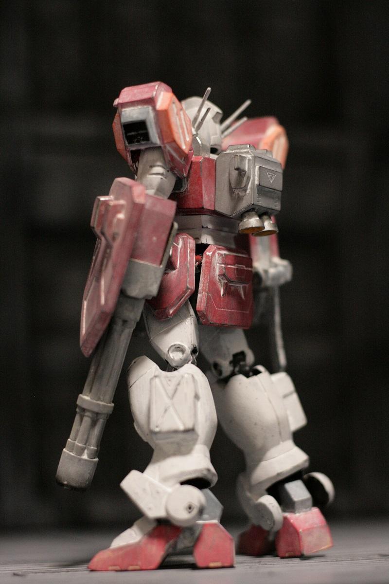 ①頭部削りこみ、マスク部を切り離し再接着②足首で2mmかさ上げ③お腹で1mmかさ上げ④肩軸棒を斜めに再接着⑤股間軸ギリギリまで下げて、前方向に1mm寄せて再接着