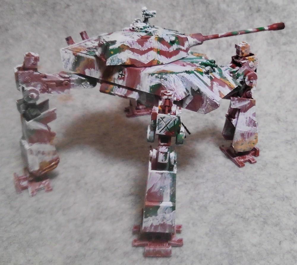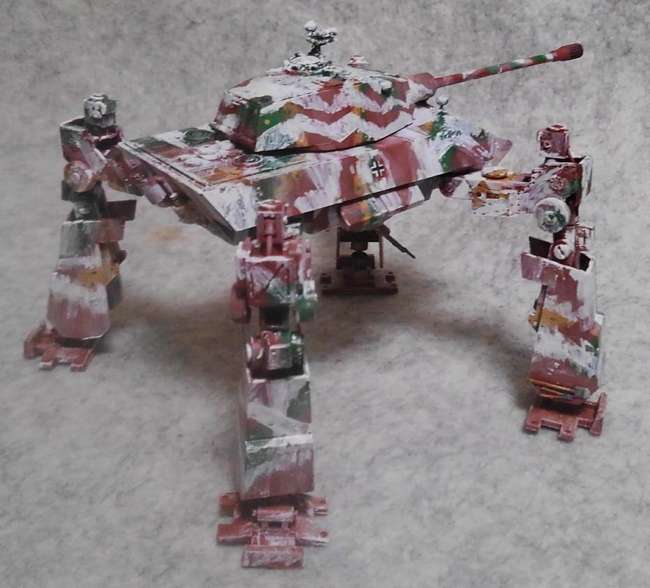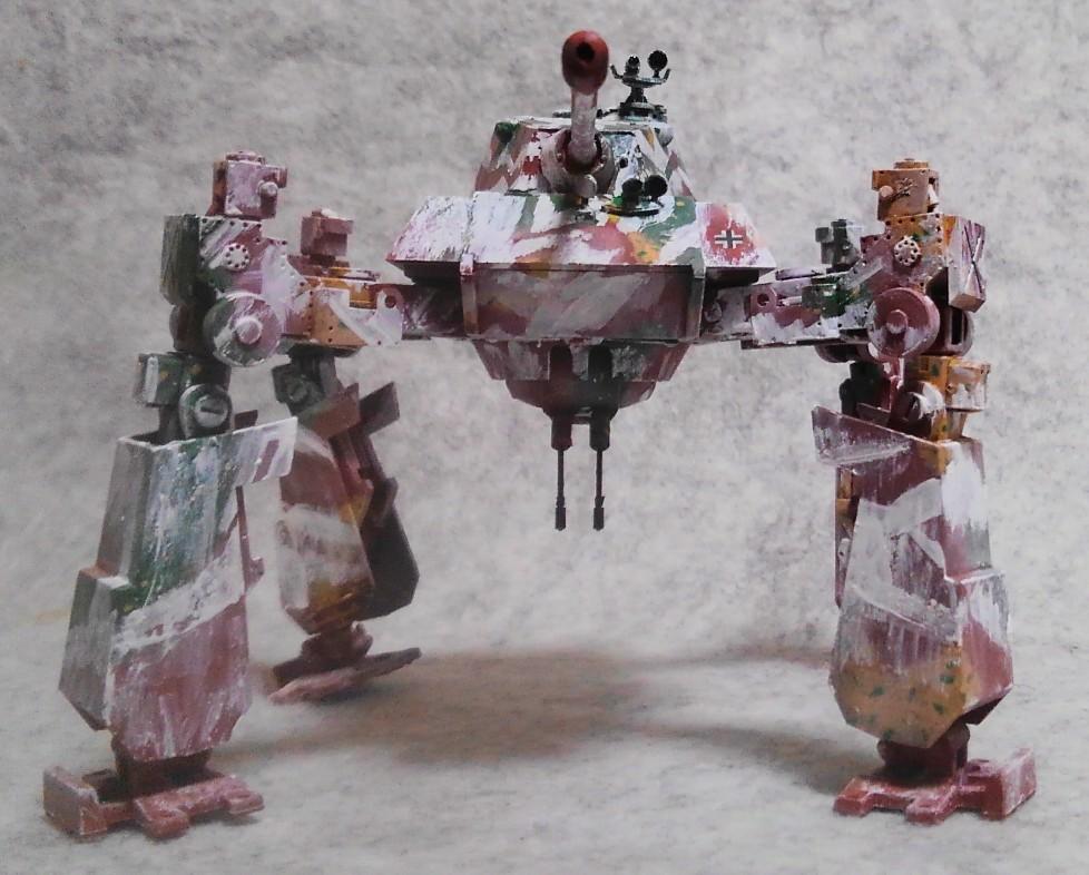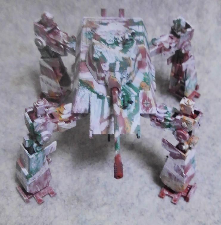 元のデザインが多脚戦車だったのでカッケー!と予約。で、手に入れてマジマジと見てみると…この脚で歩けるのか?だったし、お腹のクーゲルブリッツの砲塔も活躍出来そうになかったので、ガンプラジャンクで脚フレームを作り、キットのパーツをかぶせていくことにしました。