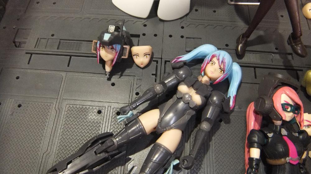 制作について、髪及び服装については色を変更しました。箱絵のとおりに作ると鋼鉄ジーグにしか見えないので→ジャーマングレーに服装は変更、ただしハンドパーツ、アームカバー、ネクタイはキットのまま採用しました、また後頭部のスコープを差替え可能にして、ポニーテールに変更しました。