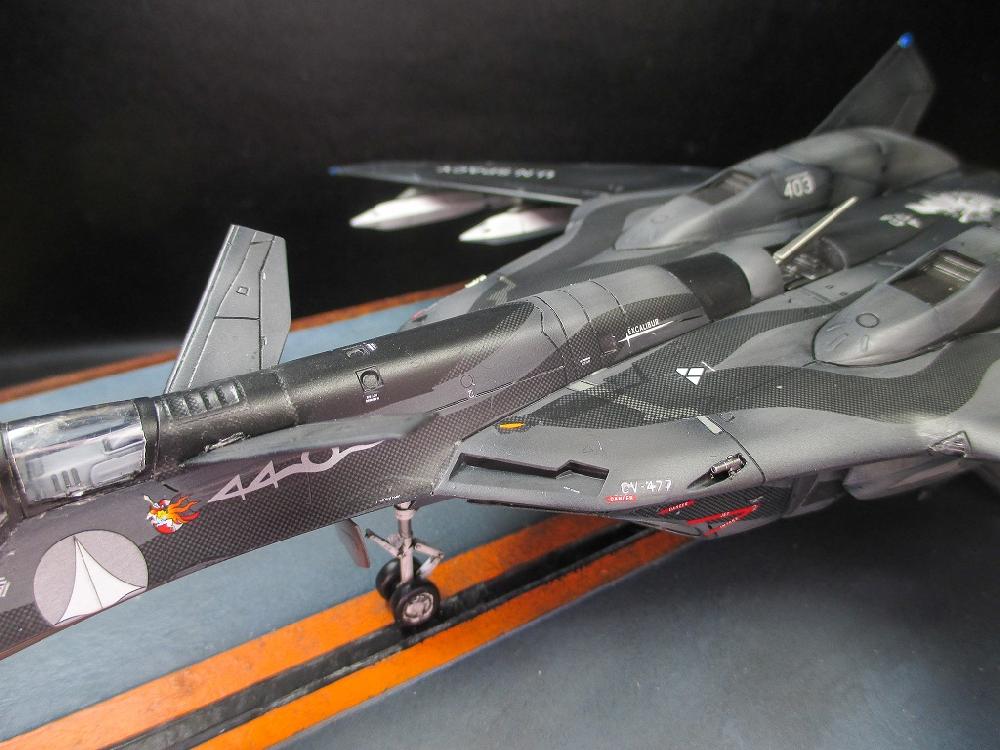 カーボン調のデカールが特徴の機体で、キットの発売以前から自作デカールを駆使して制作している方々の作品を見ていつか作りたいと思っていた機体でした。