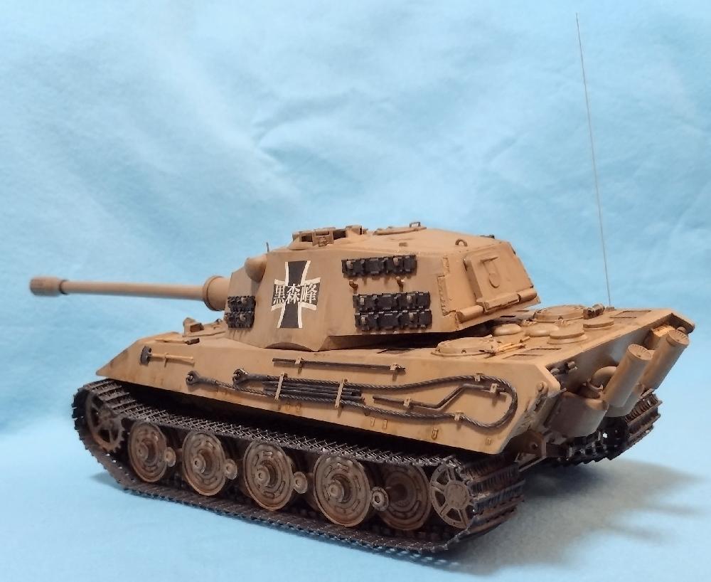 黒森峰戦車技術部が戦車道連盟の規定内でどこまで強化出来るか試した戦車。結局、規定はパスできずもっぱら対プラウダを想定したアグレッサー戦車として練習で使われたとかなんとかってことで( ╹▽╹ )