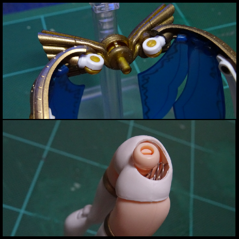 腰内部にバネを仕込んでパーツが安定するようにしてあります。
