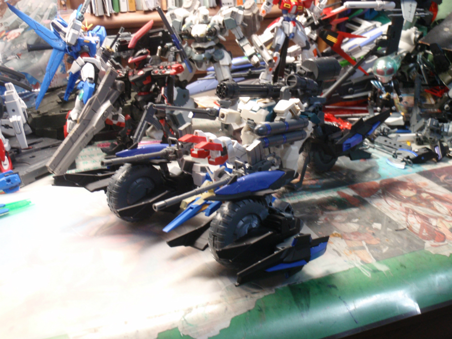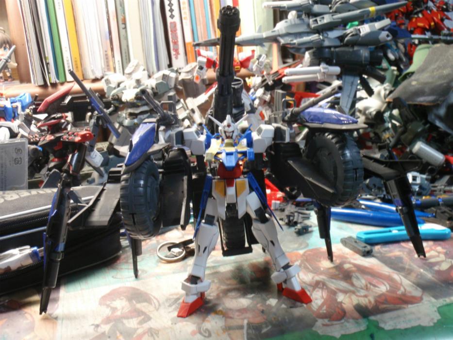 コンセプトは「トライクに変形可能なMS」。ぶっちゃけ最初はトライクじゃなくて車にしようと思ったのですがパーツ&資金不足でメテオホッパーが3つしかなかったのでトライクになりましたwww 変形時なんですがかなりバランスが悪いです。自立?何それおいしいの?足があるのは緊急脱出時に変形用のパーツを外した後でも移動を可能にするためです。まぁでもそれ以外の時はほぼお飾りですけどねwww