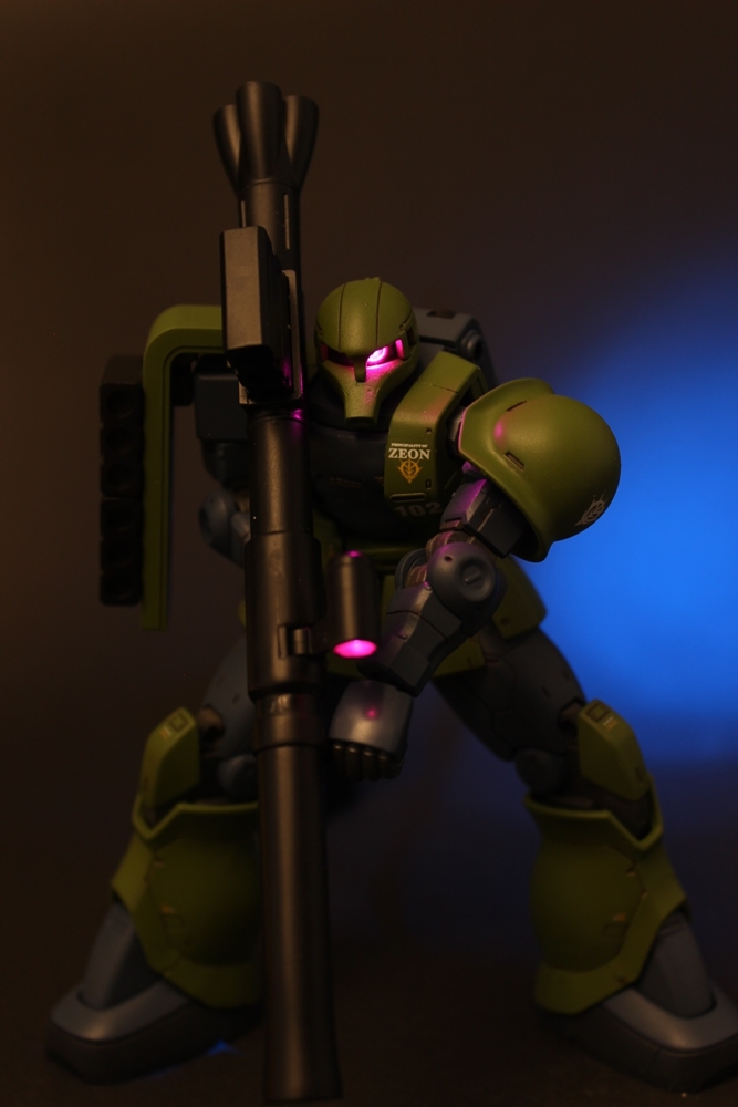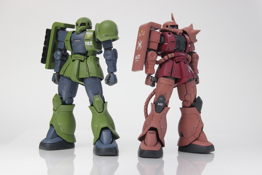 ショルダーアーマーを加工中に破壊してしまって、「HGUC旧ザク」から拝借してきましたが、それさえなければ、キット単体で作れたはずです。