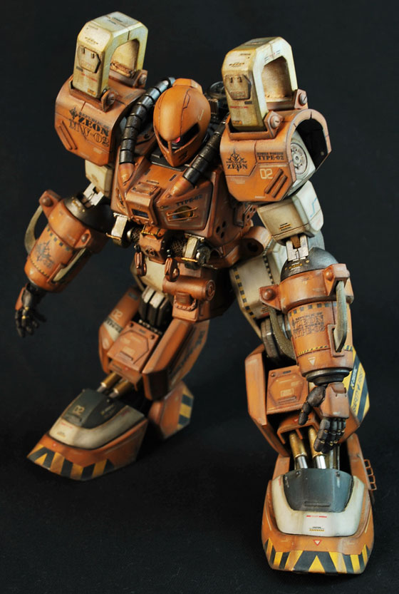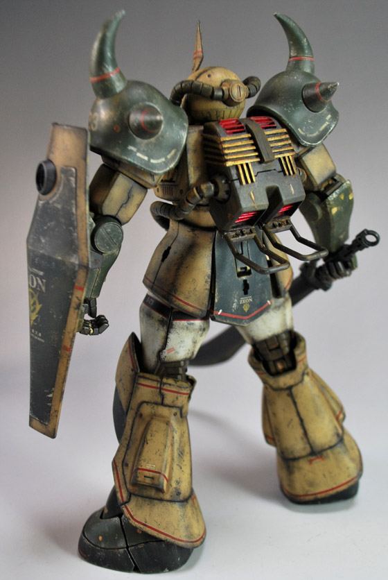スゲーカッコいいですよね♪僕のガンプラはスミ入れが汚し塗装みたいになってしまうのですけどこんな感じに塗装できたら嬉しいですよね♪砂漠の厳しい戦闘を勝ち抜いてきたジオンの歴戦の漢達が想像できます。