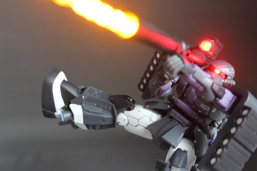 後に世界初の踏み台にされたモビルスーツのパイロット「ガイア」がルウム戦役時に乗っていた事にされた試作機のダークパープルなザクを光らせてみました。