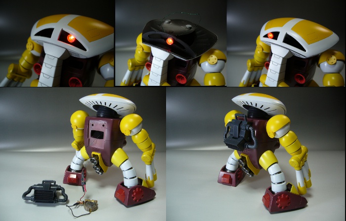 HGでの発売前にどうしても旧キットで完成させたかった作品です。(ギリ間に合った)6本の指の合いが悪いのでプラパイプで作りなおし、モノアイもLEDで発光させてます。