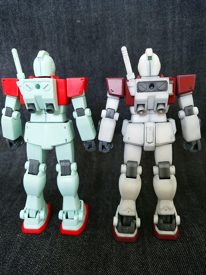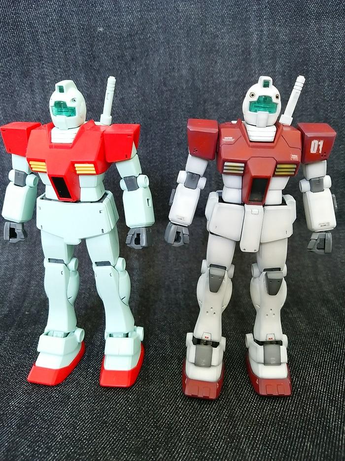 腰は古いHGのガンダム、膝当てはザクの肘を流用しています。最後に素組みとの比較写真を用意しました。