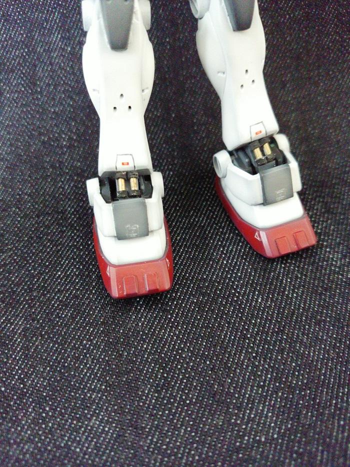 ディテールアップのために胸や脚周りに穴開けスジ彫り、膝や肩などの各所にプラ板、ジャンクパーツを使用しており、頭部バルカン砲と足首のシリンダーには真鍮パイプが使われています。