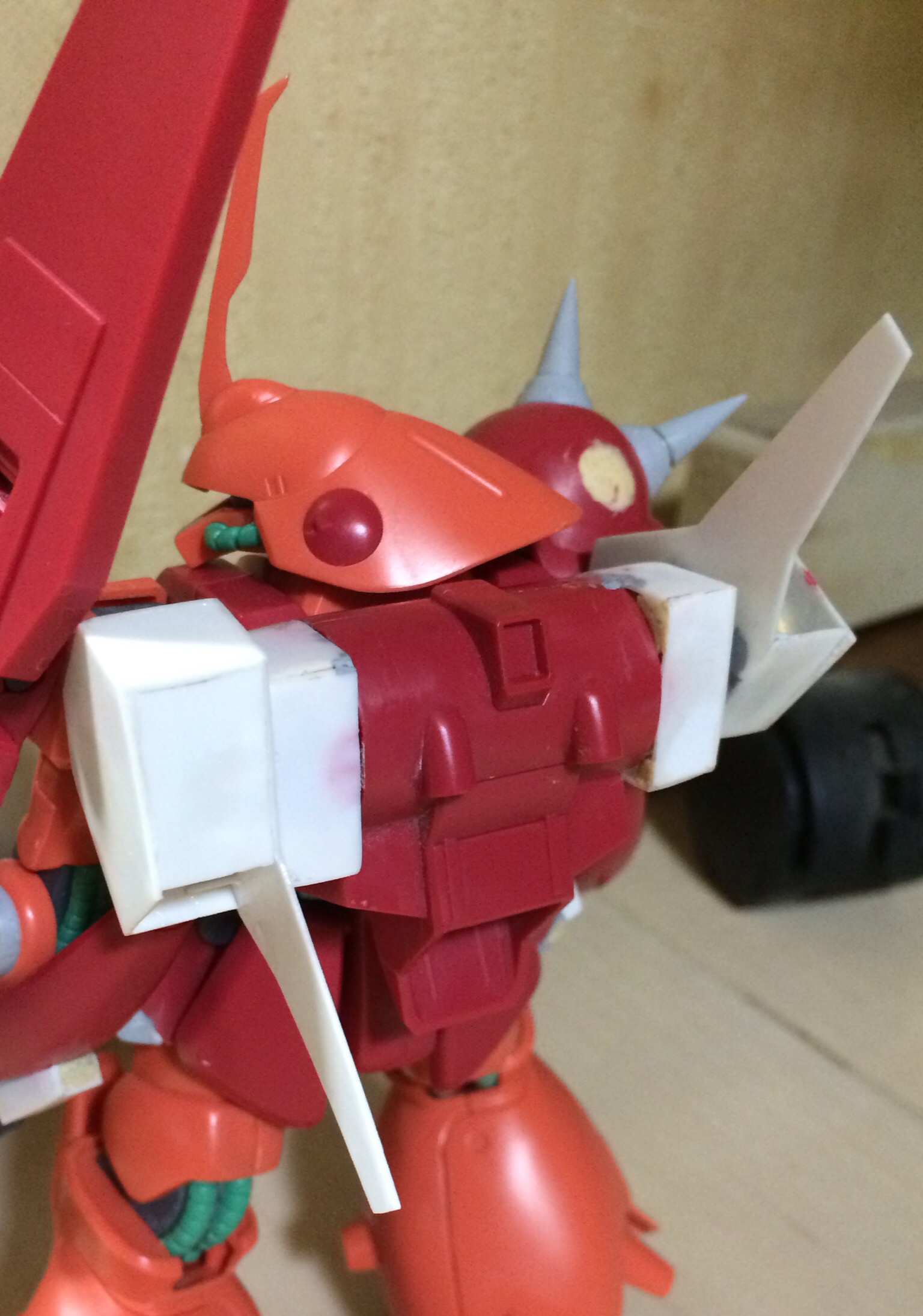 HGUCマラサイをベースに、プラ板工作とエポキシパテのすり合わせで改造してみました。背中のフレキシブルブースターは上下に可動します。