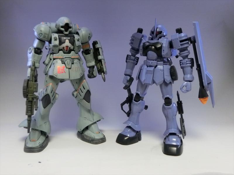 当初は旧HGキットのギャンで四肢を組んでいたが、途中でREVIVEが出て足を組み替えた頃更にギャンスロットが出て膝パーツを交換した。