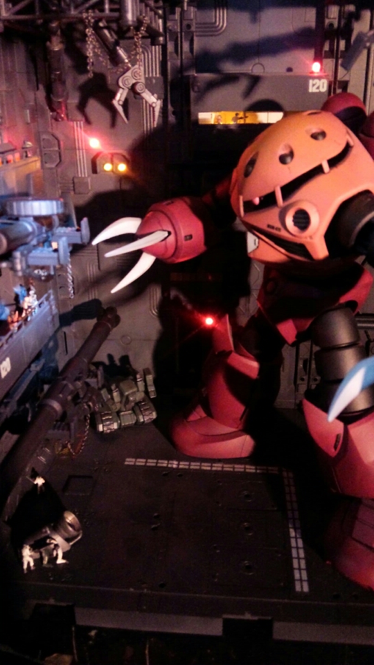 シャア専用機をハンガージオラマで撮影しました。