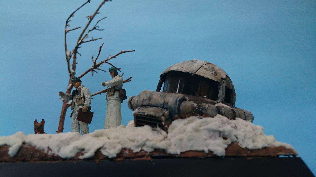 雪はタミヤの情景テクスチャーペイント使ったのですが、雪と粉雪を併用するといい雰囲気になりますね。