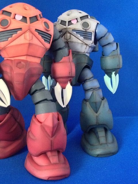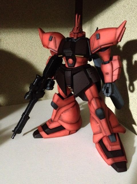 素組みにパステル汚しとつや消しスプレー仕上げです。量産機なので専用機より整備に手が抜かれている(というか手が回らない)想定で汚しとサビを派手目にしてみました。