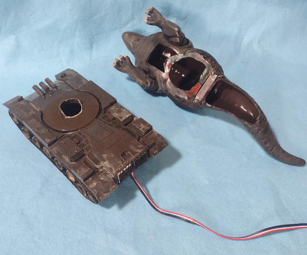 アリイのリモコン戦車にソフビの恐竜戦車を乗せました。ソフビは加工、リペイントしてます。ちとモーターの動きが悪い⋯(。•́︿•̀。)